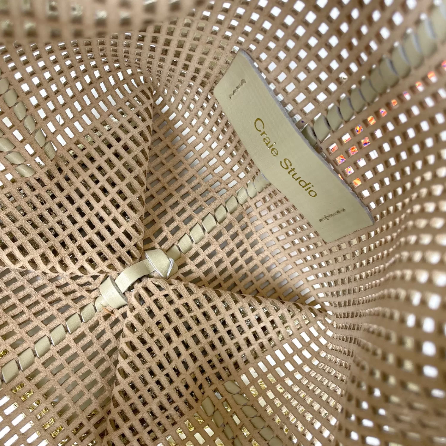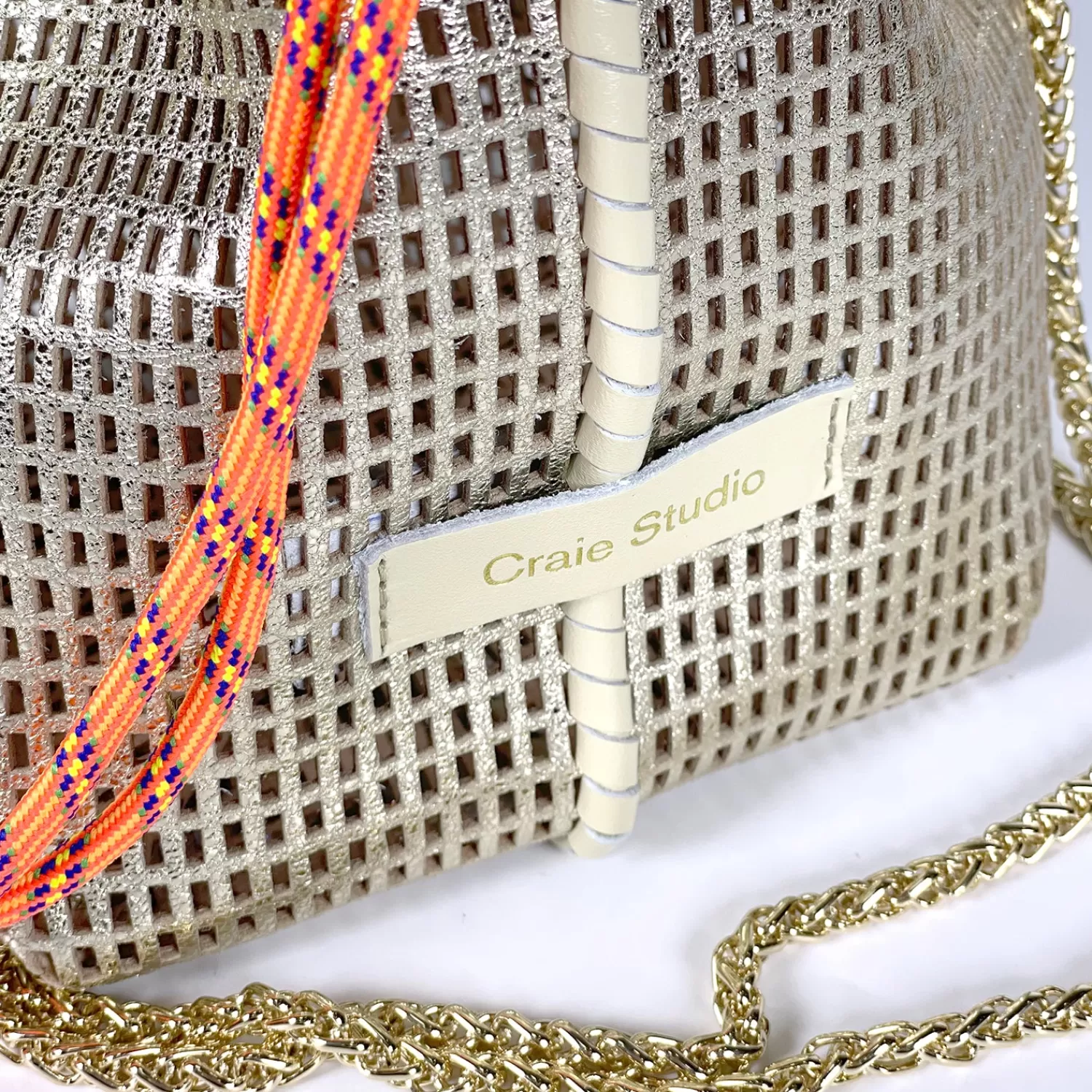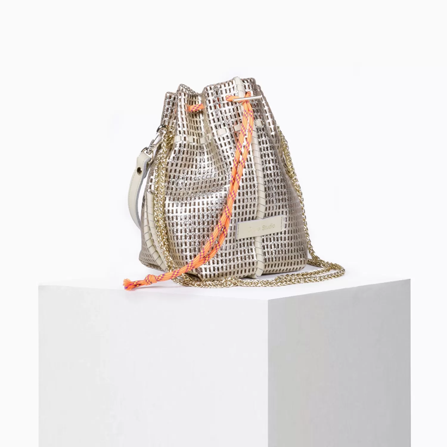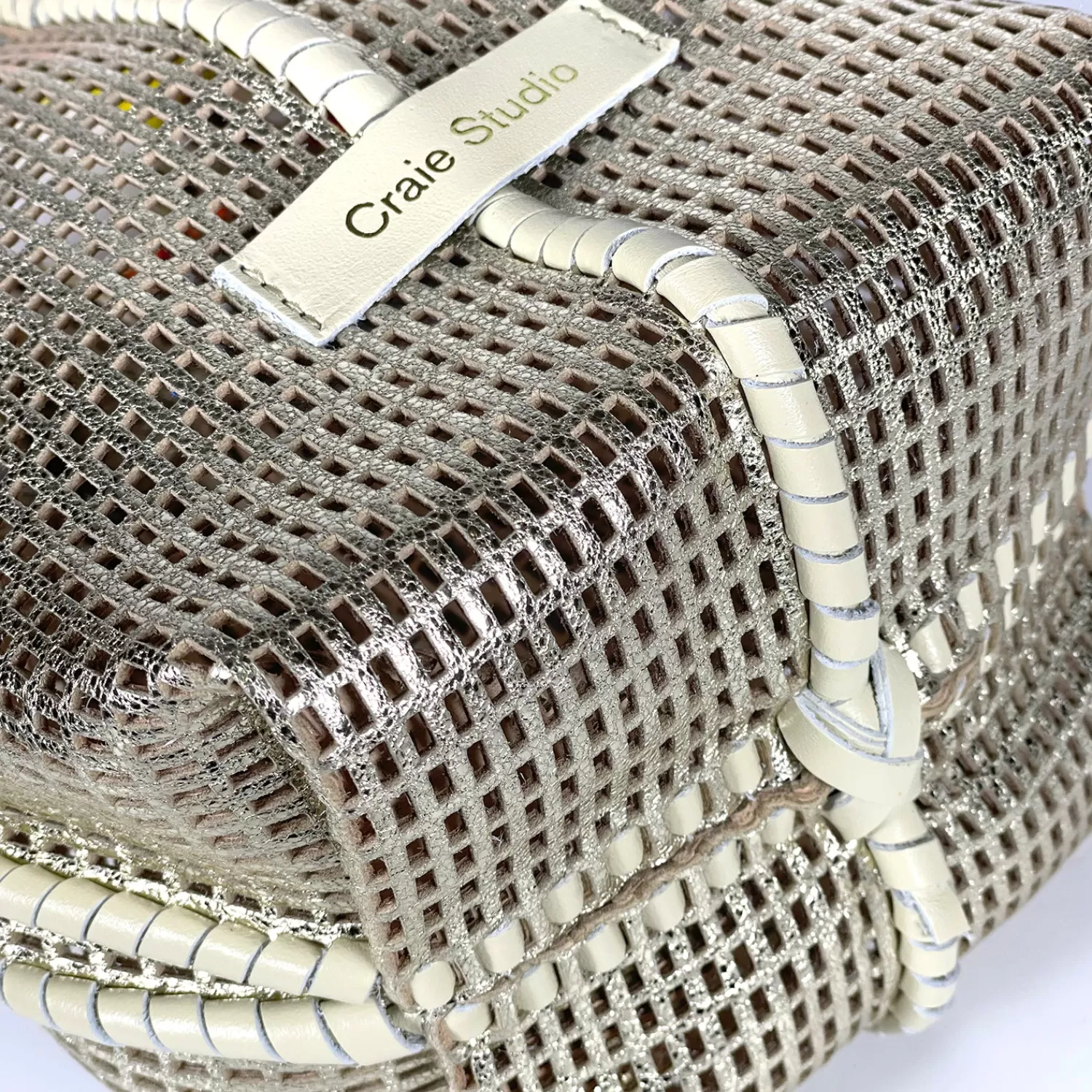 Maximisez votre style avec le Sac Bibi Or, le néo sac seau au look unique. Créé à partir d’une seule pièce de cuir, délicatement pliée et cousue à la main avec un cordon de cuir. Le cuir d’agneau or clair est collé à une doublure en cuir végétal naturel, puis perforé de petits carrés pour obtenir un rendu sac bourse souple et aérien.