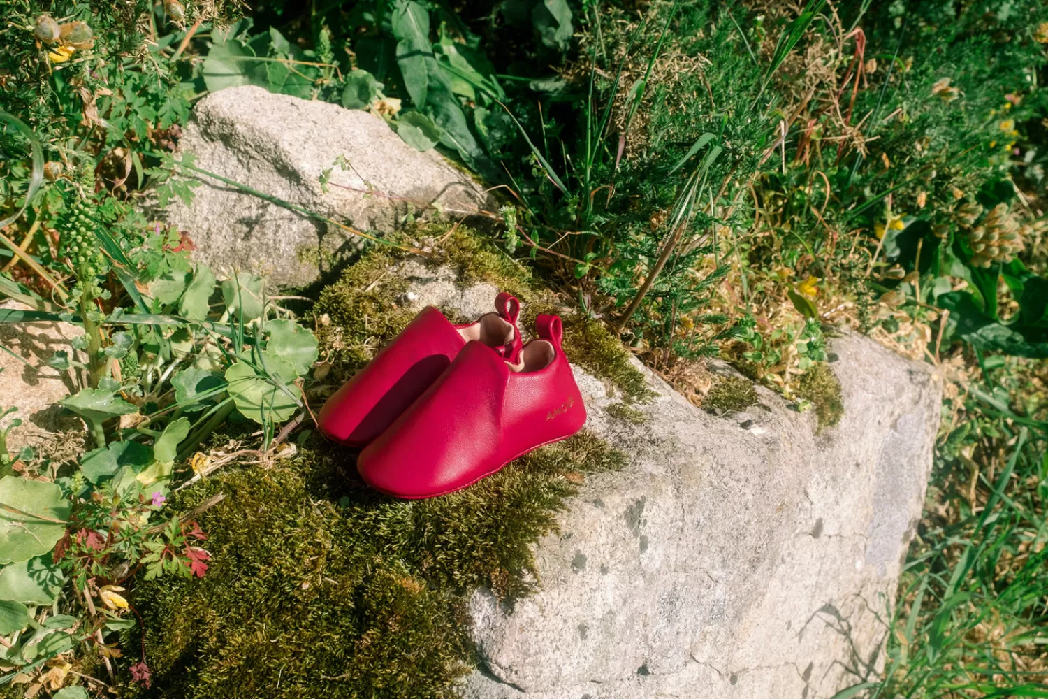Chausson A en cuir d’agneau souple et durable, coloris rose vif Berry. Tannage végétal sans chrome et sans métaux lou…