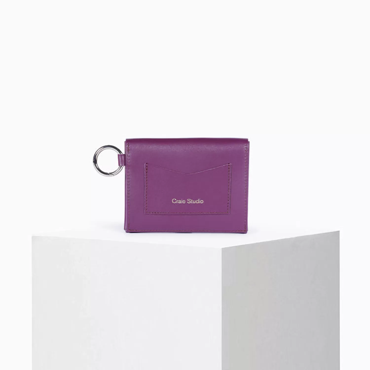 Pochi, notre porte-monnaie moyen format unisexe en cuir épais de veau coloris violet Berry.