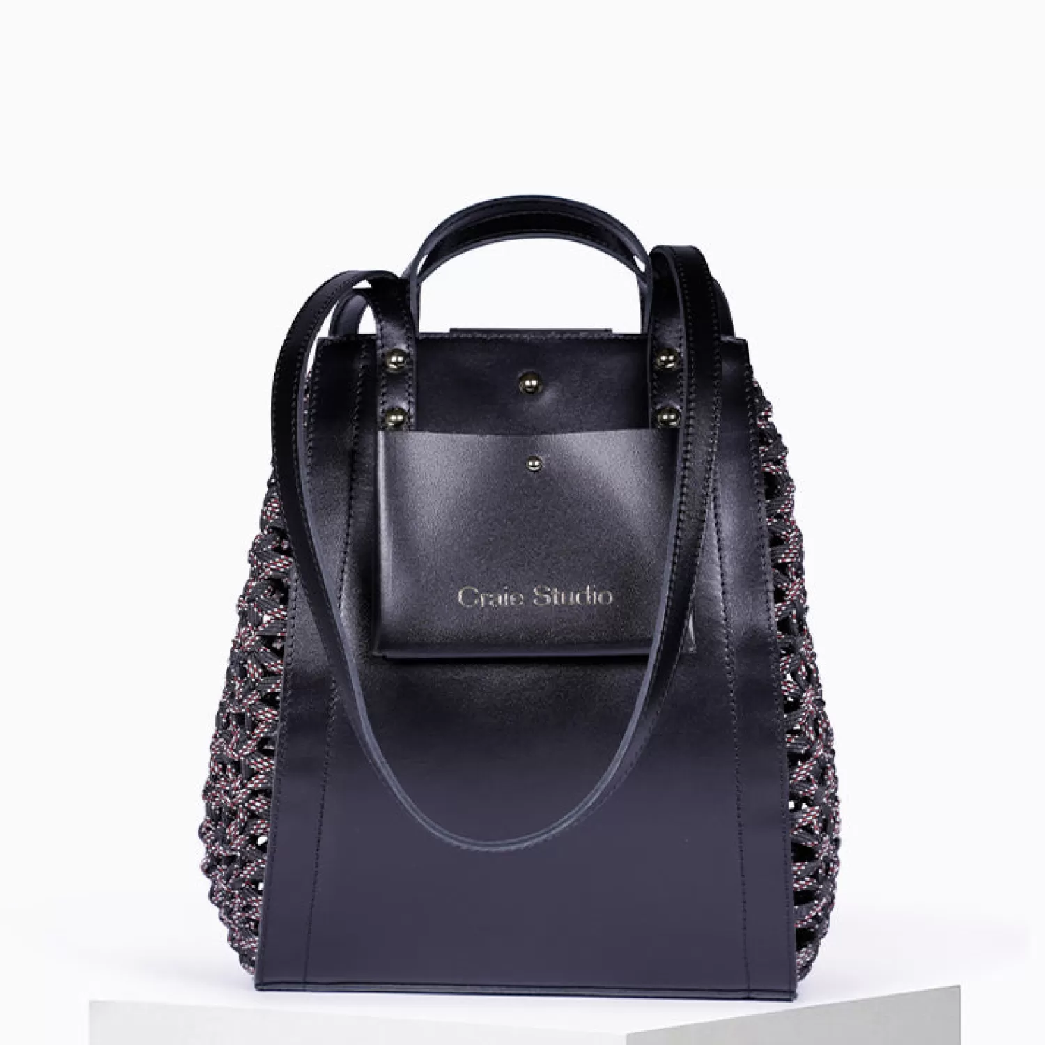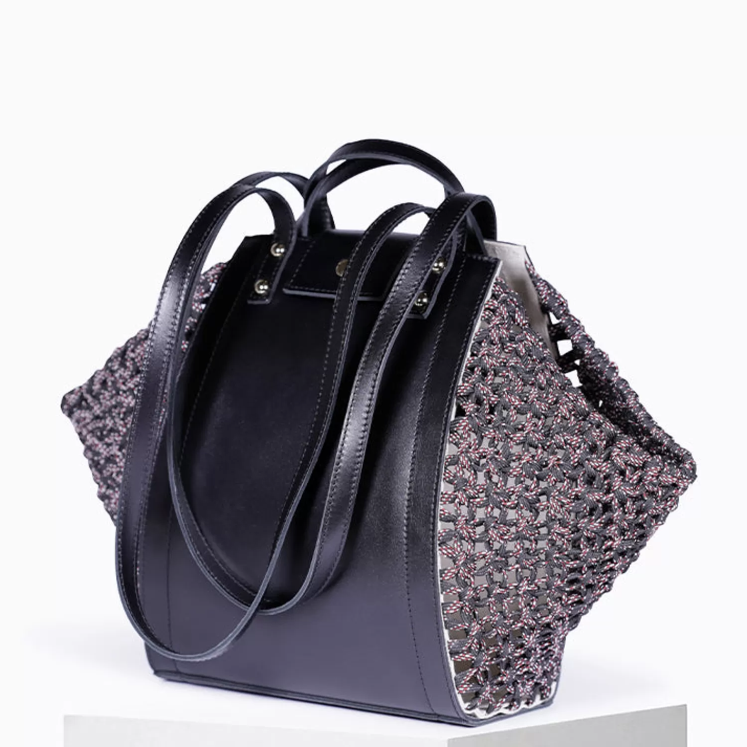 Soyez prêtes à vous démarquer avec le sac Link Mix Noir. Pensé dans un mélange audacieux, il marie avec brio un beau cuir de vachette rigide Noir à un magnifique macramé noué à la main en cordon d’escalade Mix noir.