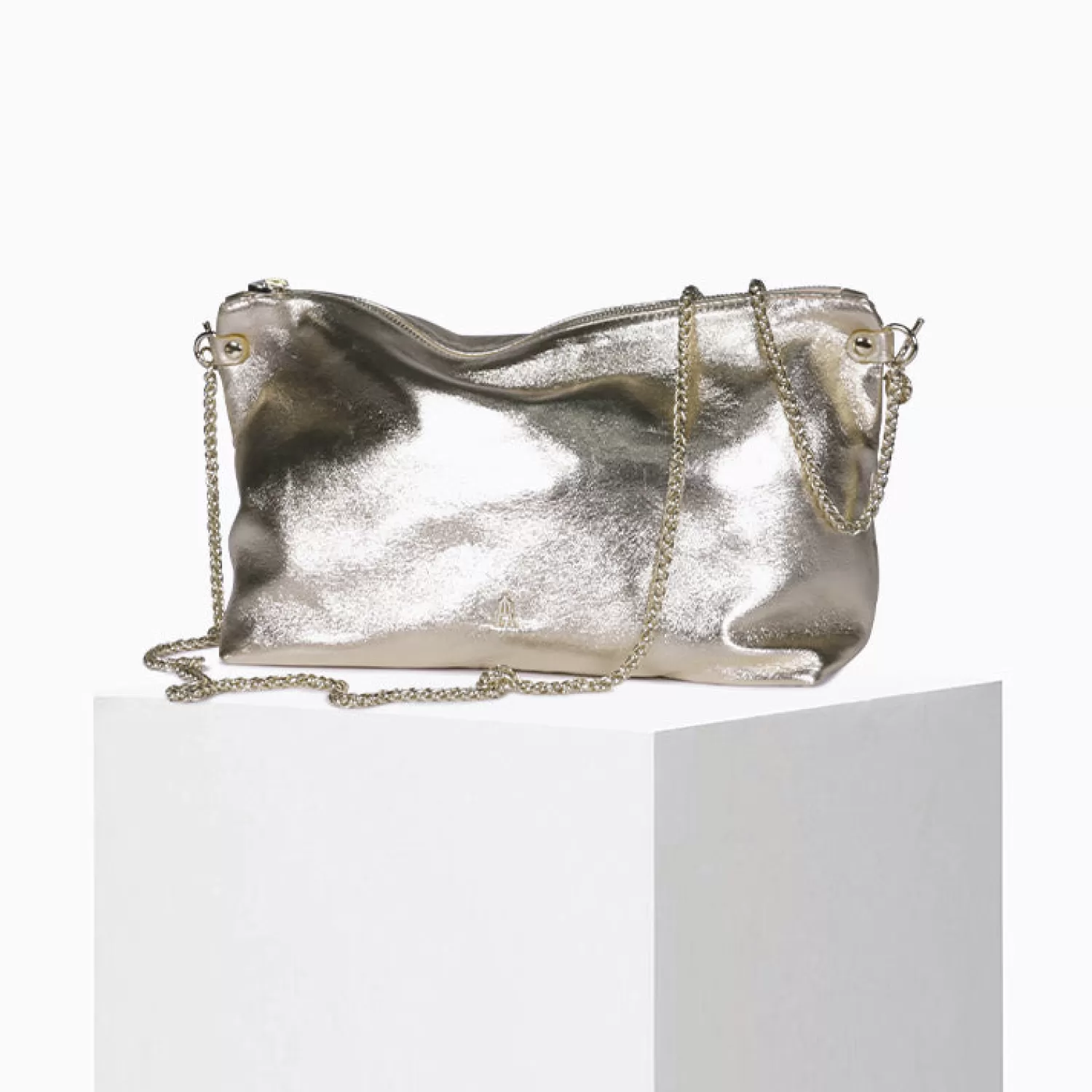 Mallow Or, le sac Hobo moderne au volume parfait, pensé dans un beau cuir d’agneau souple doré qui reflète la lumière.