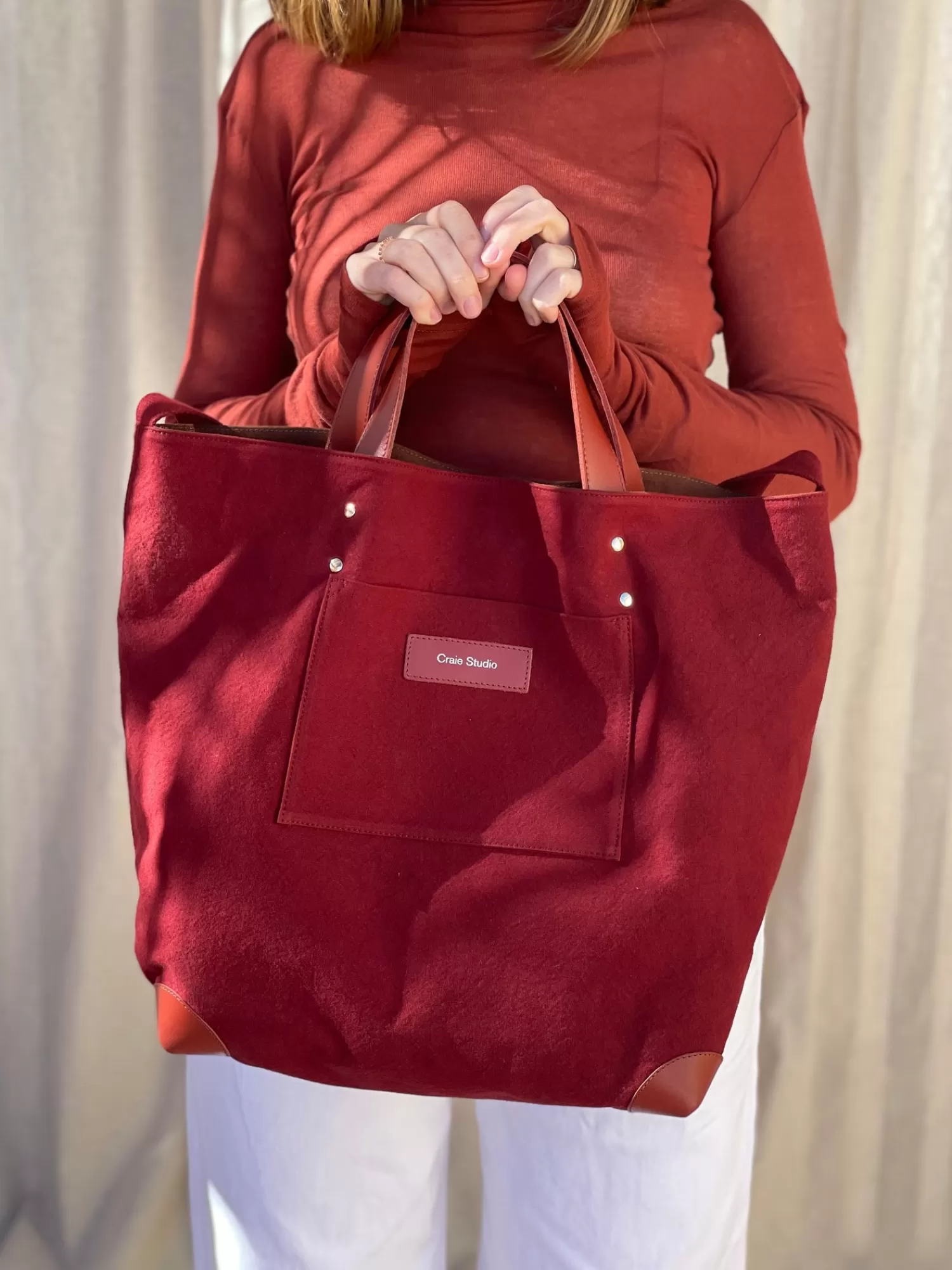 Les poignées et les coins du sac sont renforcés en cuir de vachette assortie.
