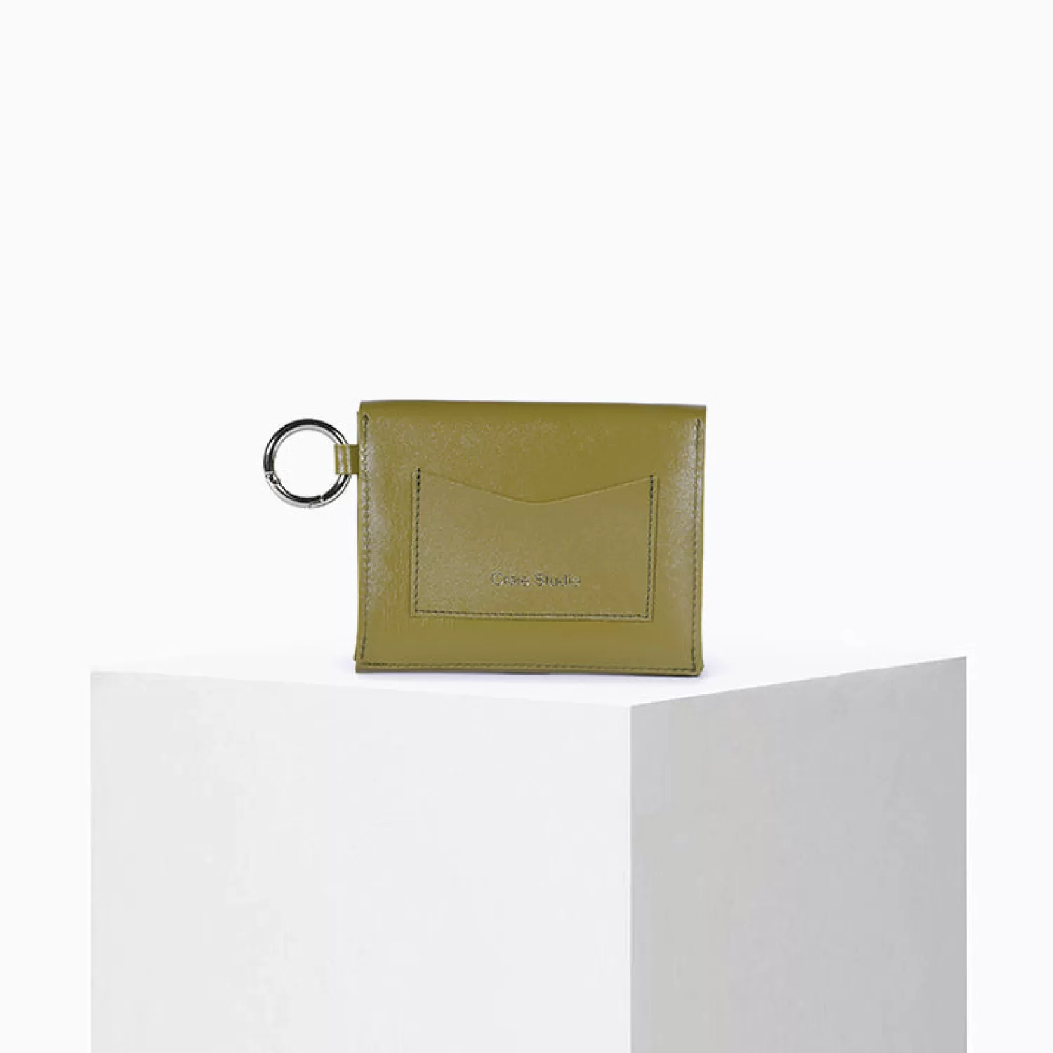 Pochi, notre porte-monnaie moyen format unisexe en cuir épais de veau coloris vert Kiwi, un kaki original.