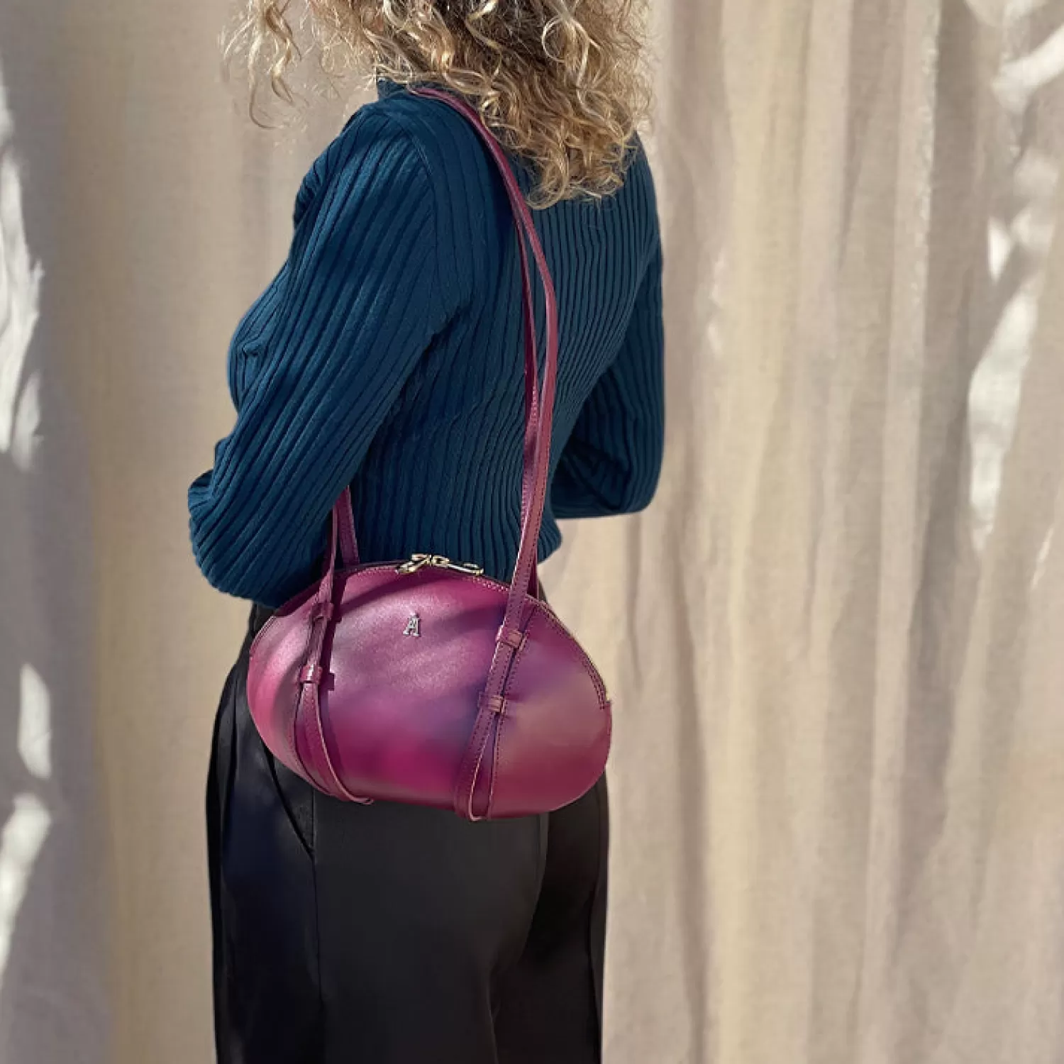 Malgrès sa petite taille, ce modèle offre une large contenance grâce à sa forme ovaleVous pouvez le porter à l’épaule ou en crossbody grâce à sa poignée modulable qui coulisse dans des petits passants sur les côtés du modèle.