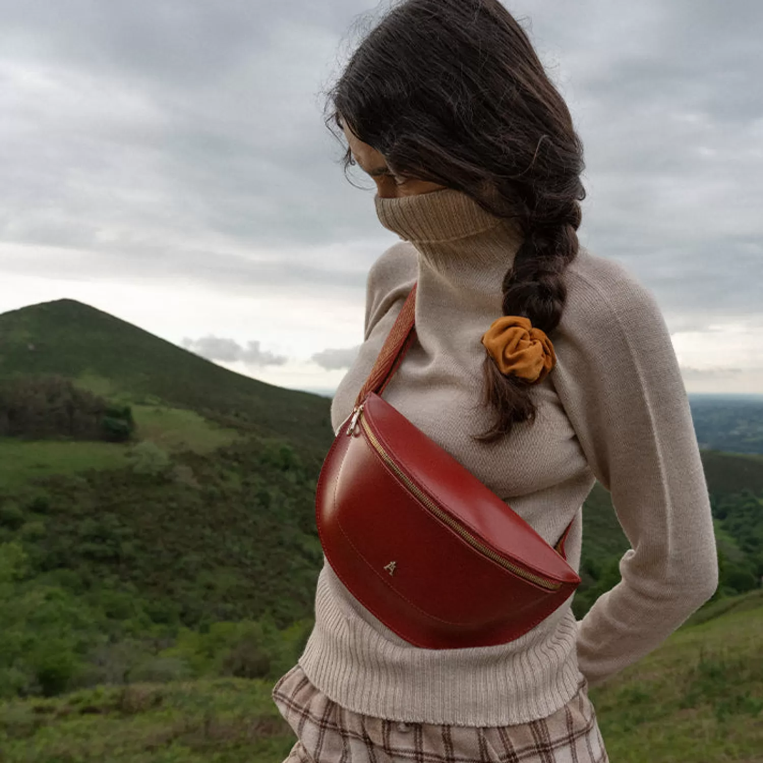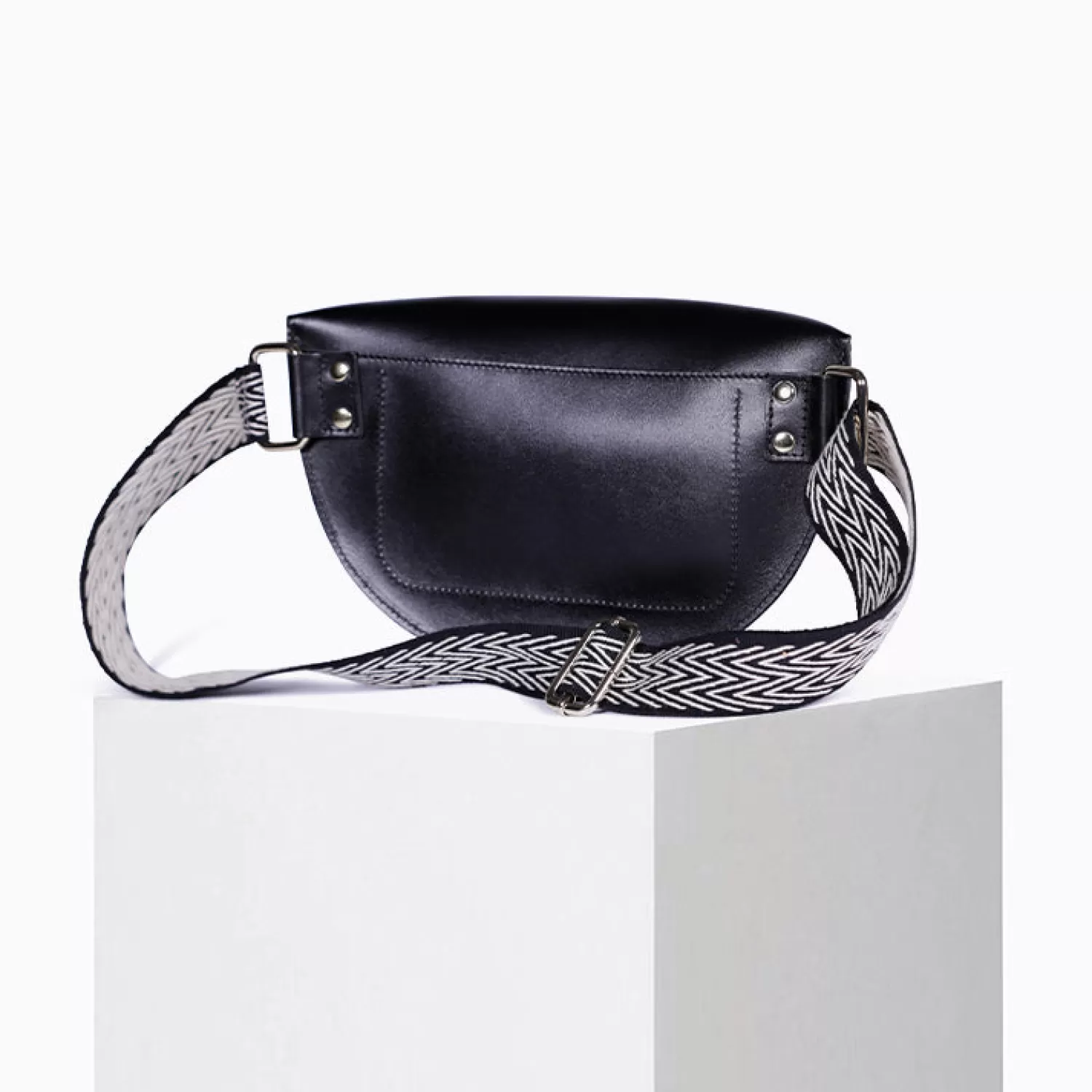 La banane Smile Noir est la belt bag Craie Studio revisité tout en courbe, réalisée dans un cuir de vachette noir épais et résistant pour un rendu graphique.