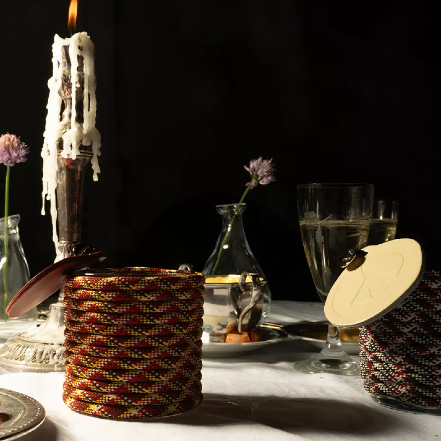 Apportez une touche mode à votre décoration avec notre bougie artisanale, conçue pour créer une ambiance chaleureuse et apaisante. Son couvercle en cuir Terracotta, estampillé du signe de la paix, ajoute une note élégante tout en protégeant la cire de la poussière. Tandis que la corde d’escalade au dessin Square marron, bordeaux, jaune et beige; qui habille la bougie offre une touche brute et authentique.
