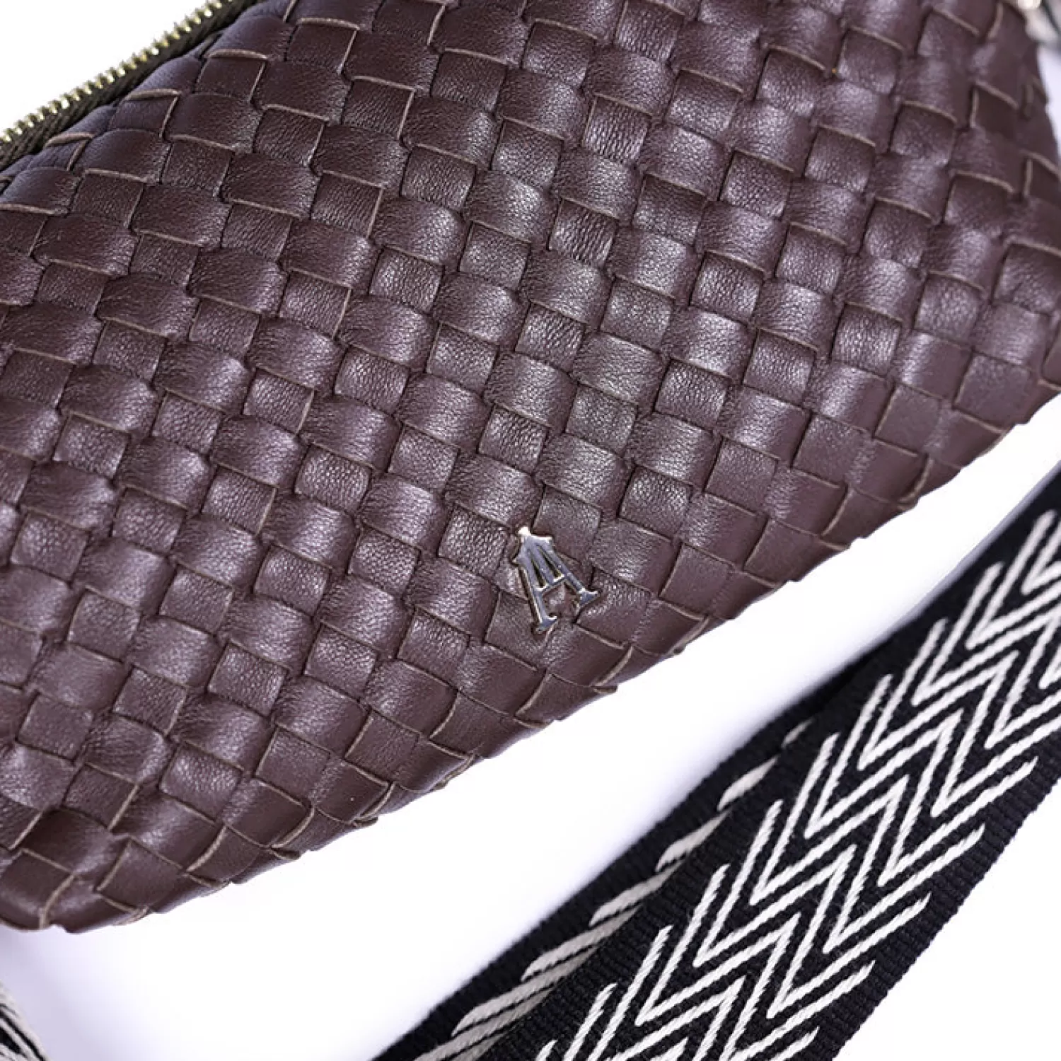 Le Nuage Tressé Brownie est livrée avec deux bandoulières : une en chaîne de 120 cm pour un look sophistiqué et une sangle de coton noir&blanc réglable pour un port plus confortable. Ce sac polyvalent est idéal comme mini sac à main, néo sac banane ou trousse à glisser dans votre sac. Vous pouvez le porter à l’épaule, en crossbody, esprit banane, ou en pochette.