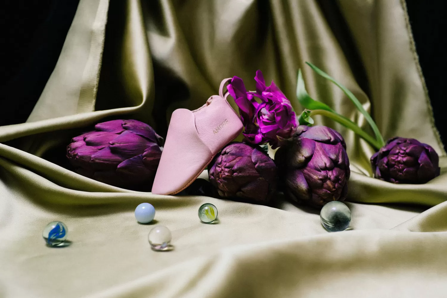 Chausson A en cuir d’agneau souple et durable, coloris rose. Tannage végétal sans chrome et sans métaux lourds, formu…