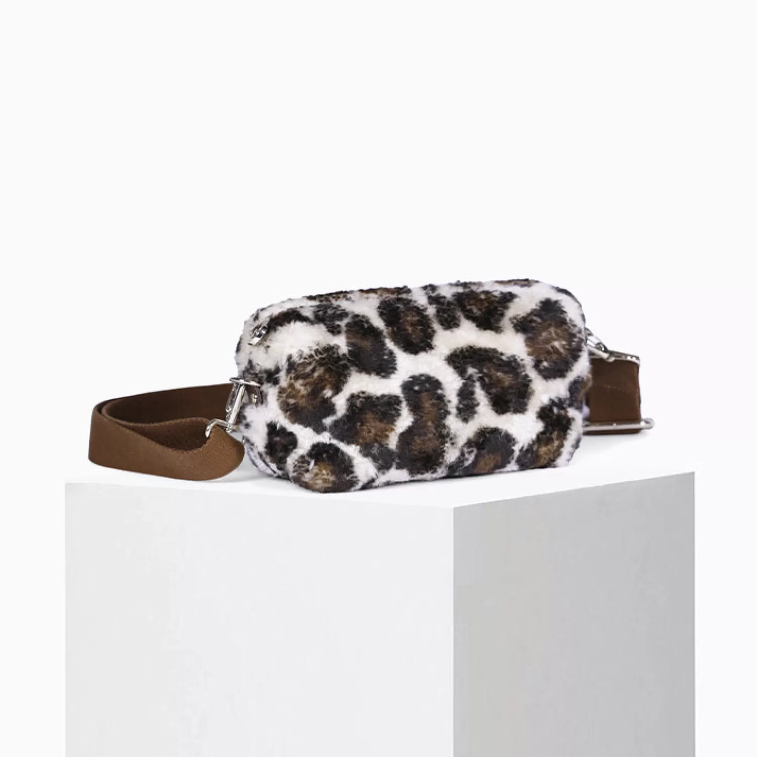 Découvrez le petit sac Nuage Laine Léopard : cette pochette allie élégance et fonctionnalité livré avec deux bandoulières.