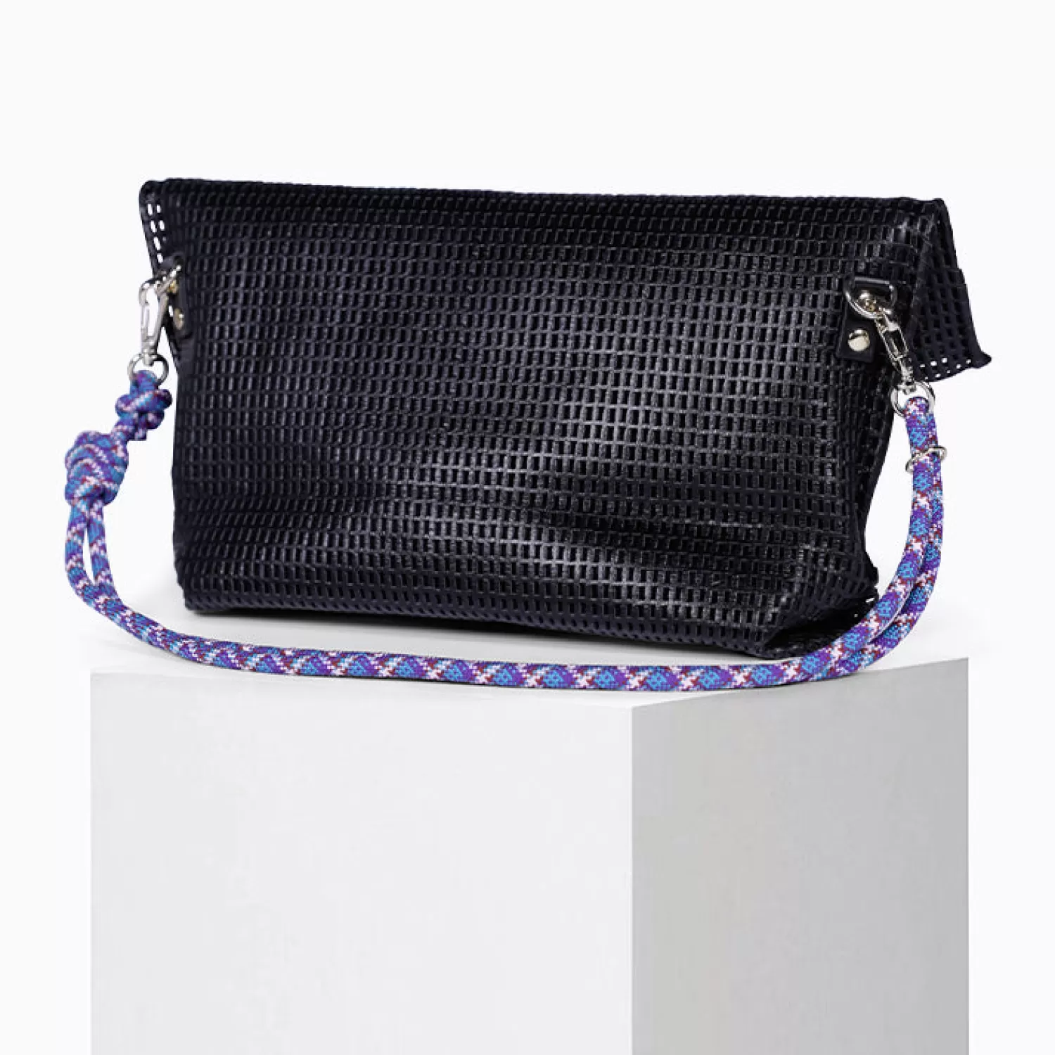 Le sac Mid Noir est un modèle unique et versatile, fabriqué en cuir de veau perforé coloris noir, construit avec un fil de cuir. Ce sac au design innovant peut se porter ouvert comme un petit cabas ou plié en format baguette. Il se module selon vos envies.